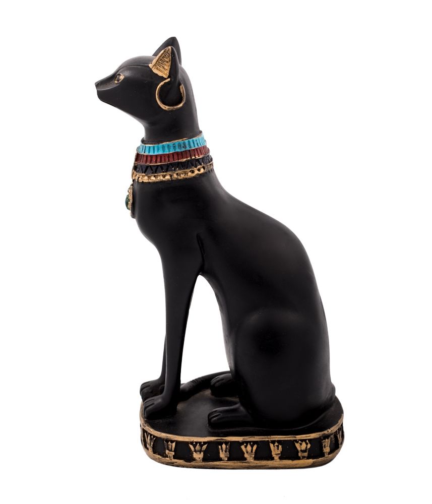 Ancient Egyptian cat Goddess Bastet Statue For Sale was a well-known Goddess by both men and women in ancient Egyptian myth. Bastet Goddess is the Goddess that combines the conceiving sprit, cunning and cleverness of the cat and power and superiority of a lion. She emerged in Egyptian history in the 2nd dynasty between (c. 2890 - c. 2670). Bastet is ancient Egyptian Goddess of Home, domesticity, women’s secrets, fertility and childbirth. She was brought at homes to protect it from any evil spirit and diseases especially women’s disease. Bastet was believed in Egyptian myth to be the daughter of God Ra, the God of the sun, she was considered as God’s Ra Seeing Eye. On the body of Bastet are ornamented ancient Egyptian motifs of Horus protective eye, and the wealth scarab. A vintage piece is of decoration to add royal historical touch to your home or your hotel hall. The statue is hand-made by talented and creative craftsmen located at the heart of Cairo. It is made with alabaster powder material that was used in making monuments in Ancient Egypt.