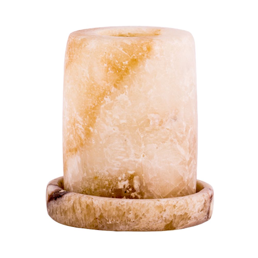 Candle holder made from alabaster stone which had its own reputation in the Pharaonic era The alabaster is a healthy stone that gives a magical effect when candles are lit with in showing its veins and other details that narrate the story of the stone itself.