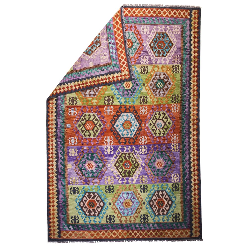 Our products are 100% made of natural materials that are totally safe for your health and usage. Heavy, Long Piles are made to grant you the softest experience on your foot. The rug is designed with bright mixture of colors such as purple, red, yellow and blue colors. A piece of accurate creation starts from the selected design, the blend of color and the hand-weaving.