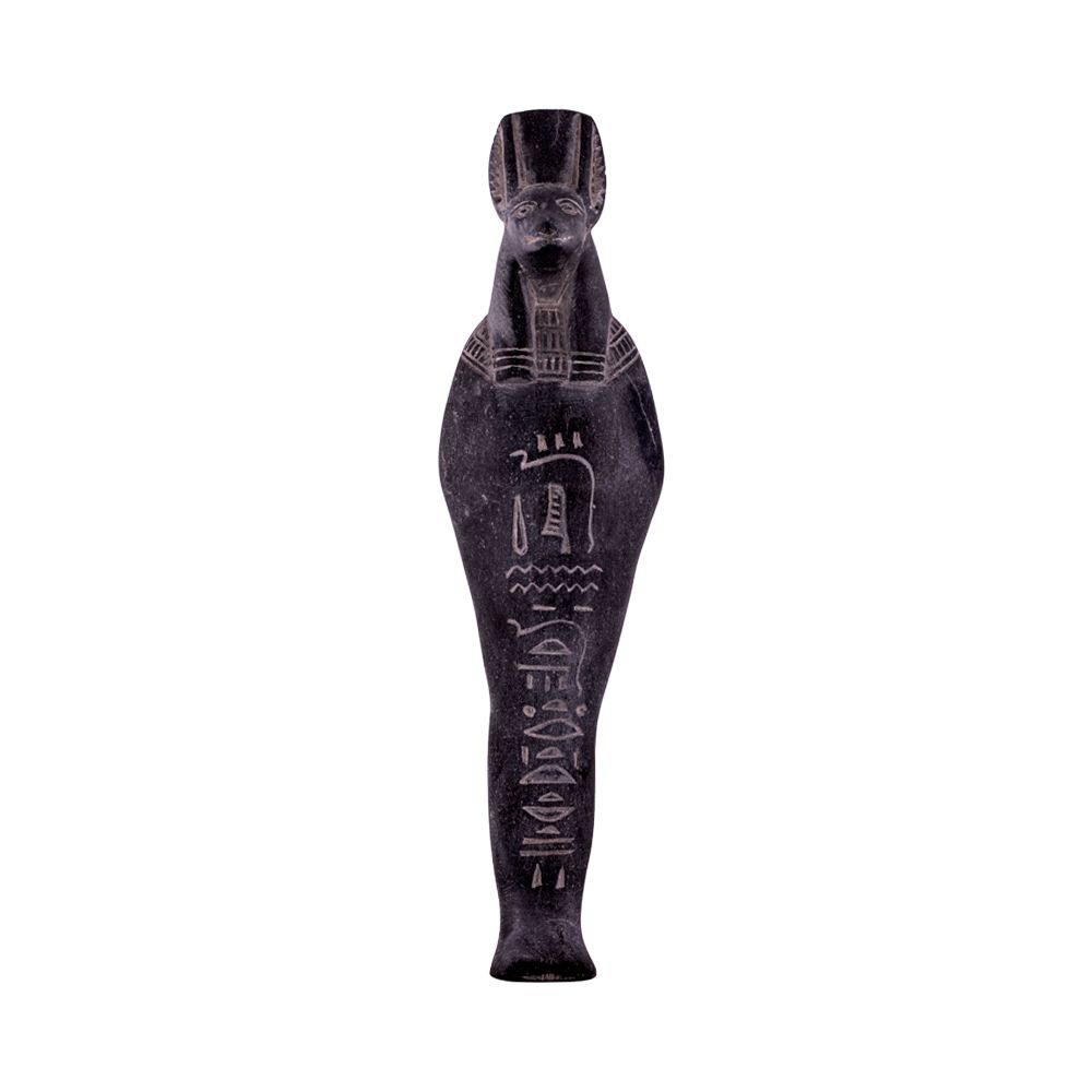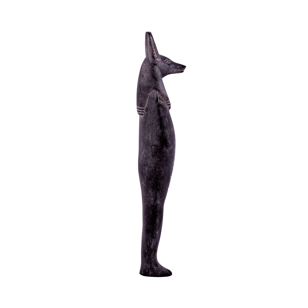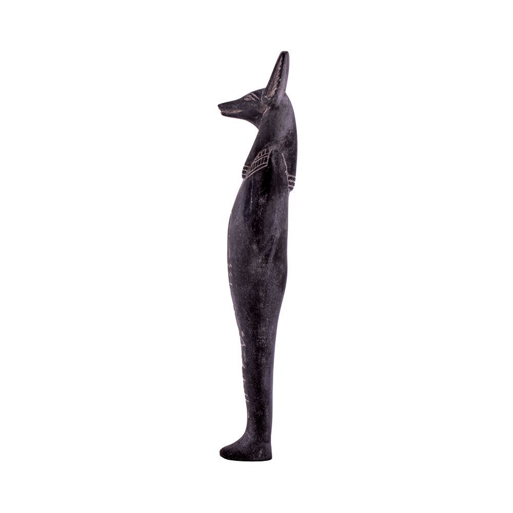 Anubis the god of death, mummification, embalming, the afterlife, cemeteries, tombs, and the Underworld, in ancient Egyptian religion. He was represented by a jackal or the figure of a man with the head of a jackal. This statue is handmade from basalt in Egypt to give an extravagant touch to your home.