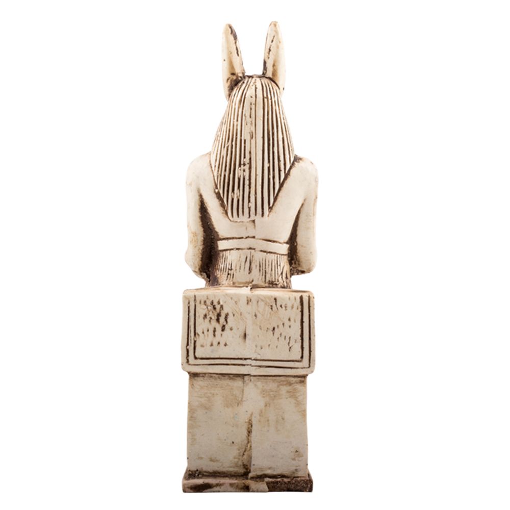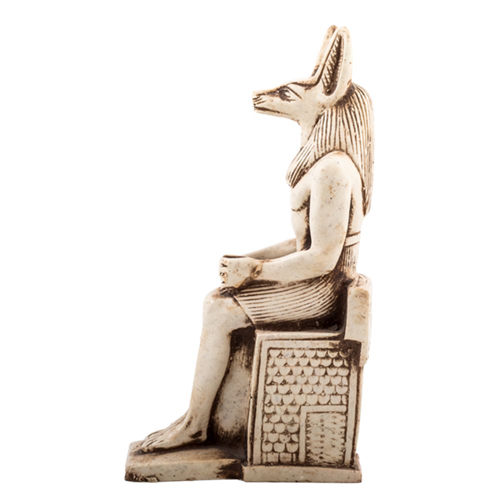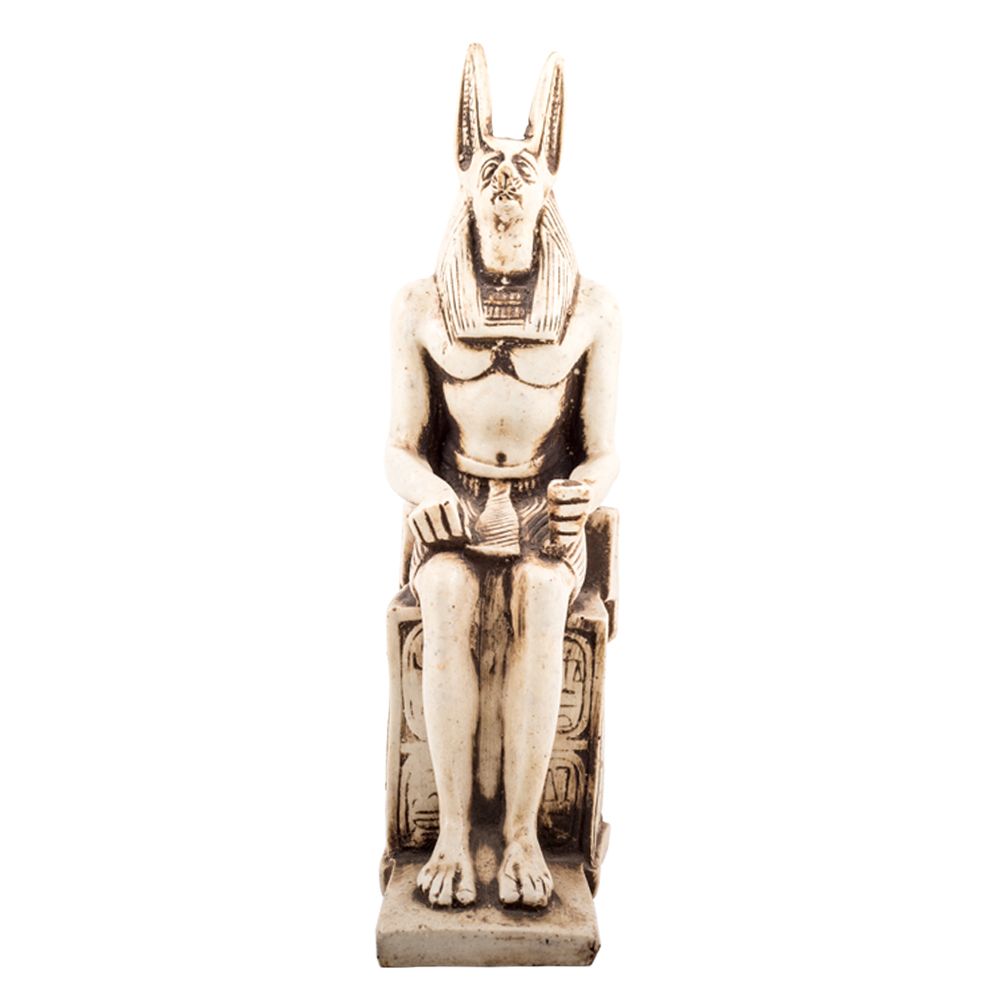 Iconic Ancient Egyptian God Anubis Sculpture, the jackals-headed God, he is well known in ancient Egyptian myth as the God of the underworld and the protector of the dead. He is one of the firstly mentioned figures in ancient Egyptian history as he showed up in most of the ancient Egyptian scenes in tombs and temples. In the well-known Osiris court, Anubis was appearing as a court recorder for the events that took place. The statue is a masterpiece of innovation that is handmade with our talented and professional artisans who do accurate curves and ornaments. As we can see the dress and the feathers of the God is very accurately carved. The statue is made of Master quality alabaster. A special historical vintage piece of Decoration is to be added to your room or your hotel hall.