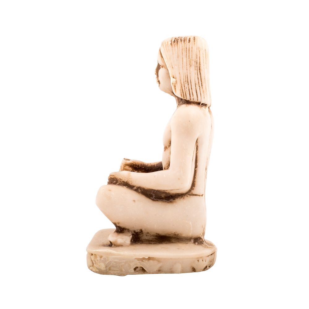 The Ancient Egyptian Seated Scribe statue is handmade of alabaster material. Egyptian Seated Scribe was the ancient Egyptian motif of knowledge and education. It symbolizes the writing skill for the ancient Egyptians. As writing was not so common skill among the ancient Egyptians. Only a Few people who could write, thus they had high respect from society.