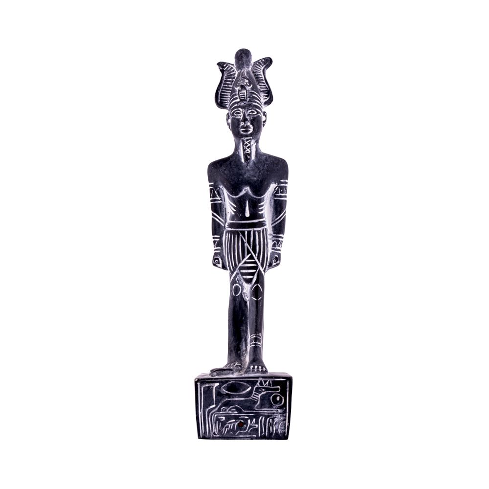 Hand-carved Statue of King Ramses II, carved from basalt stones by talented Egyptian craftsmen. Unique Ancient Egyptian Antiques add a perfect and unique touch to your decor. A centre-piece of decor with the most powerful Egyptian King statue, King Ramses II. The statue sizes around 18 H, 5 W, 8 L, (7” H, 2” W, 3” L inches) Door to door shipping is available to any address you like.