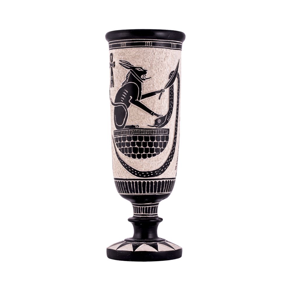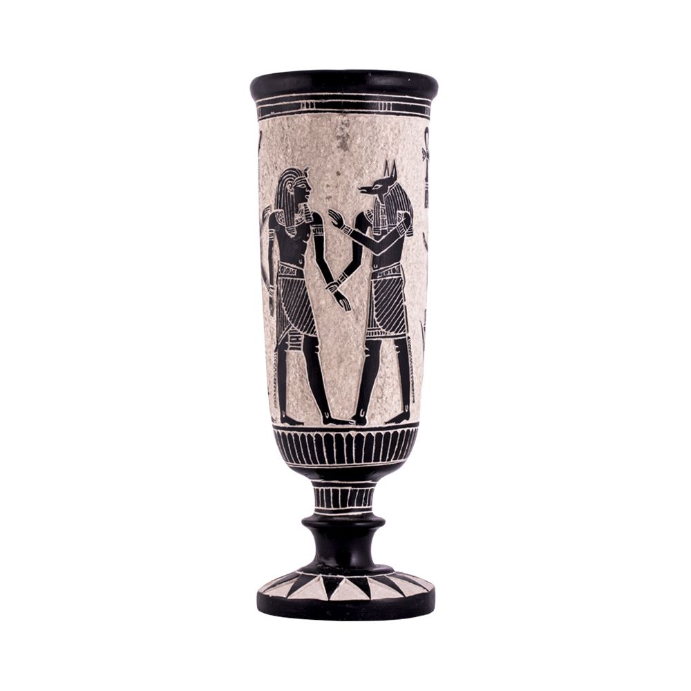 - Handmade Black Basalt Vase portraying the gods Horus and Anubis blessing the pharaoh