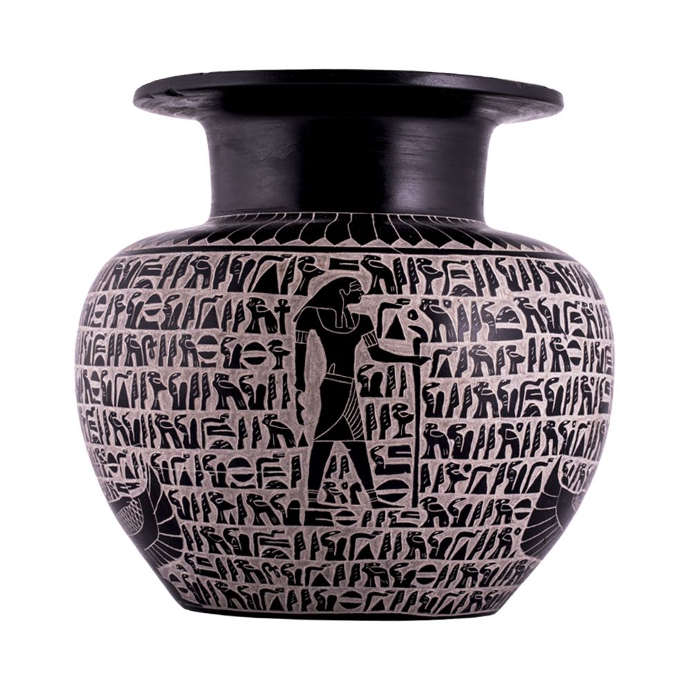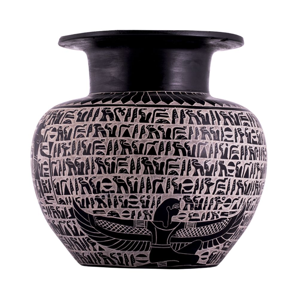 - Buy now a detailed basalt vase decorated with Egyptian hieroglyphs and the goddess Isis