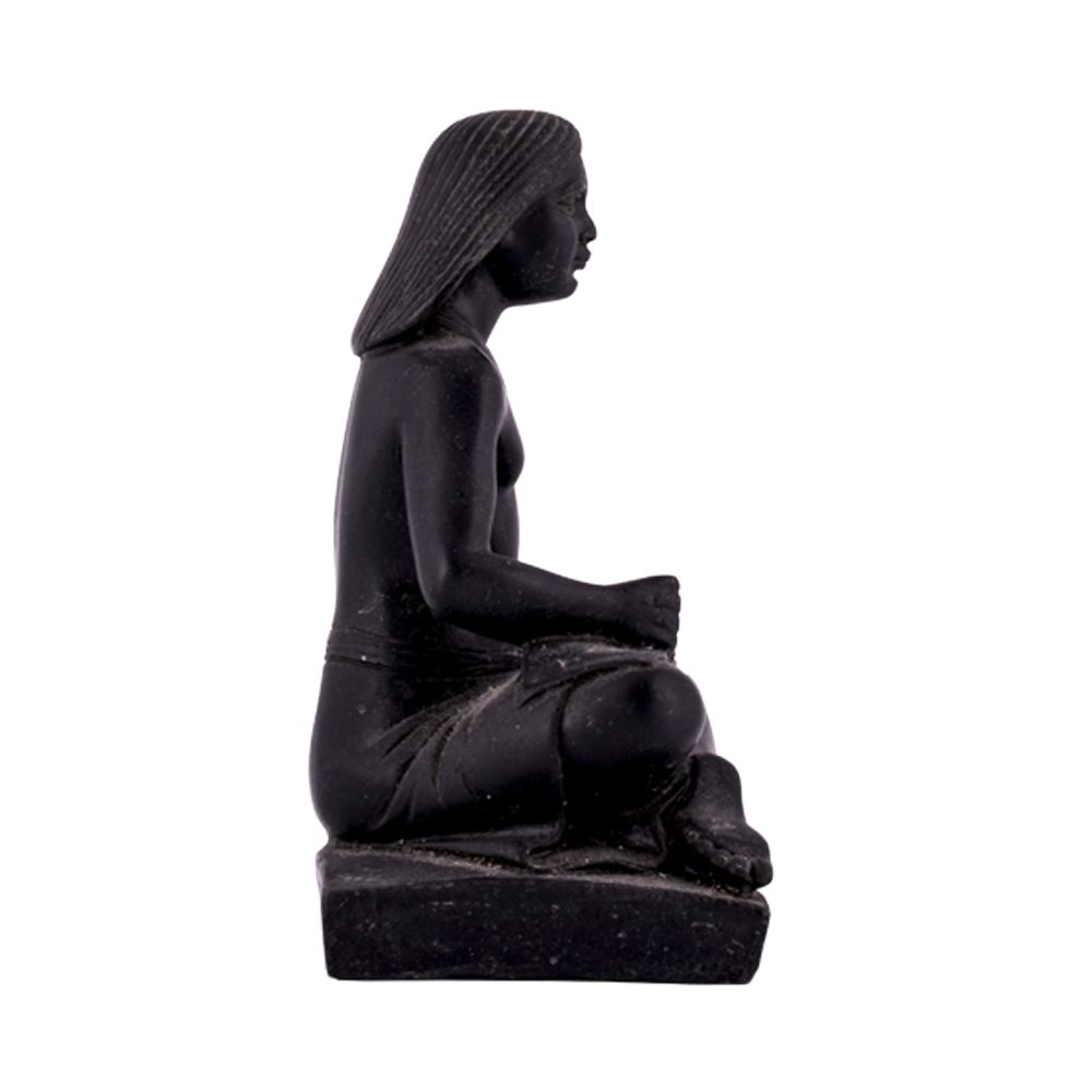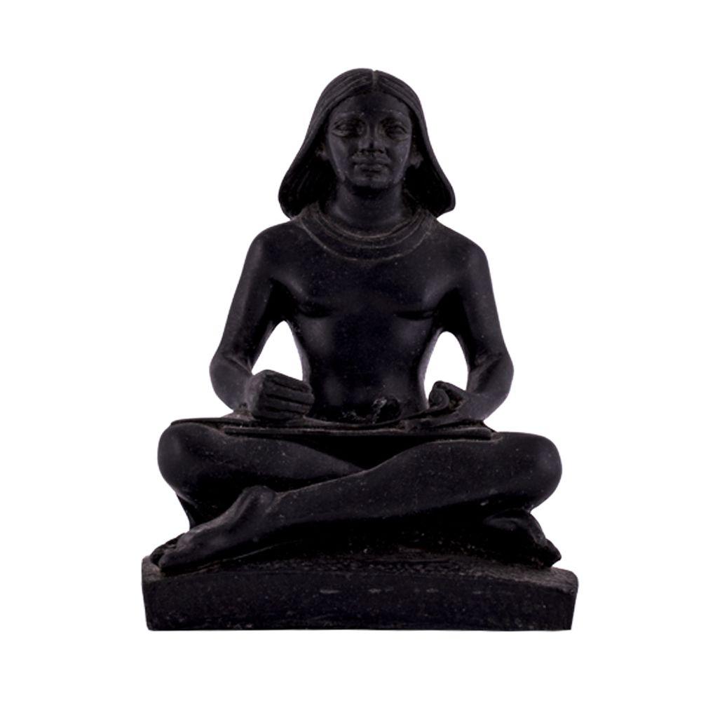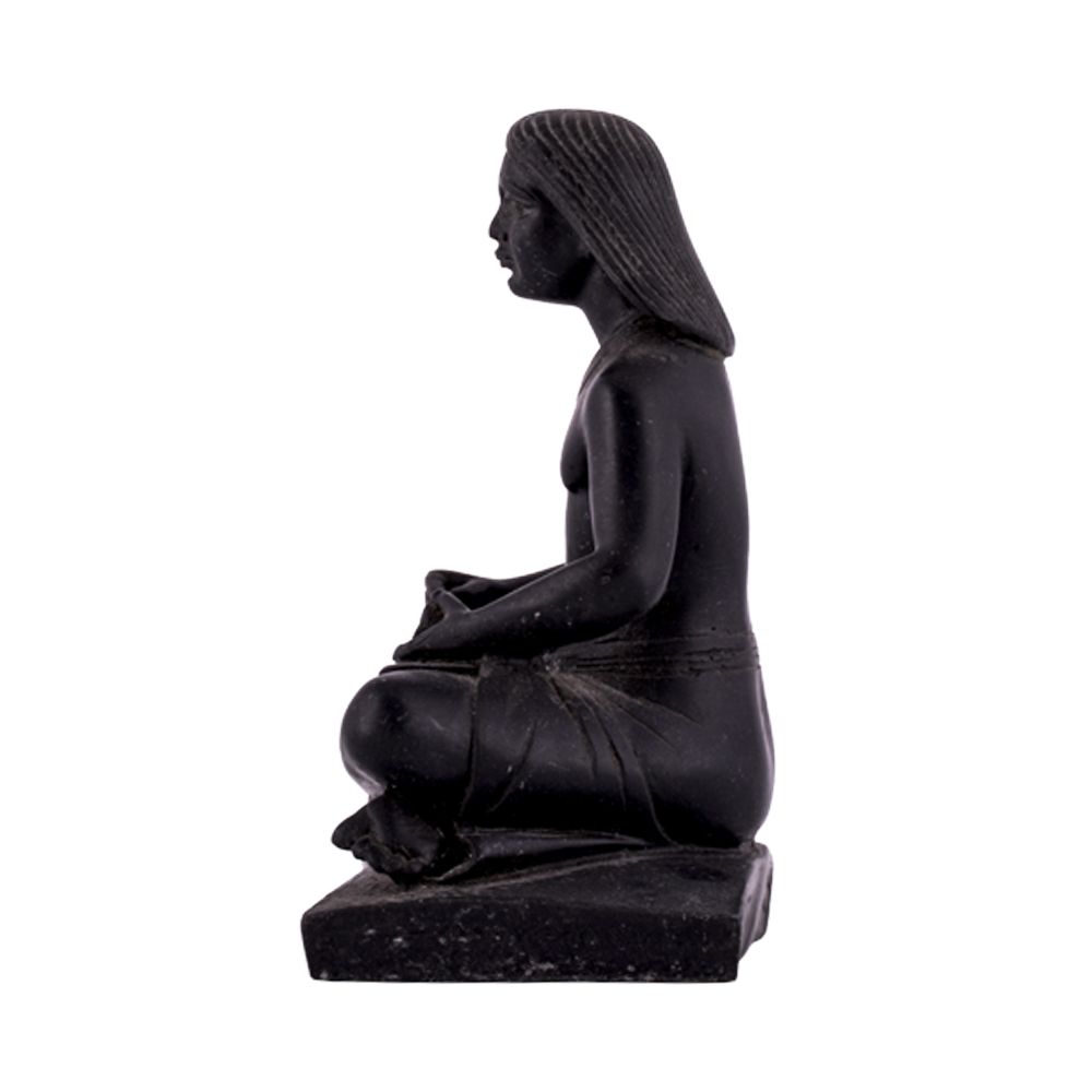 Shop the seated Scribe Statue, the greatest ancient Egyptian Writer was a major figure in ancient Egyptian Civilization. In Ancient time so few people could write, mainly the scribe who was the writer of the pharaoh, some well-educated priests and the children of the pharaoh. Thus, the scribe was a worshipped figure in Egypt for his special and unique profession at that time. Our passionate and creative Small Families craftsmen imitated the real statue of the scribe in a very accurate and detailed way by mere hands. It is made of black Basalt stones. Get your special piece now and add a historical uniqueness to your decor. The statue sizes around 15 H, 11 W, 7 L Centimeters.