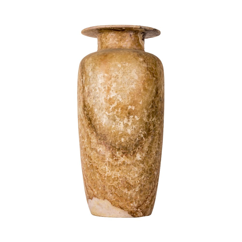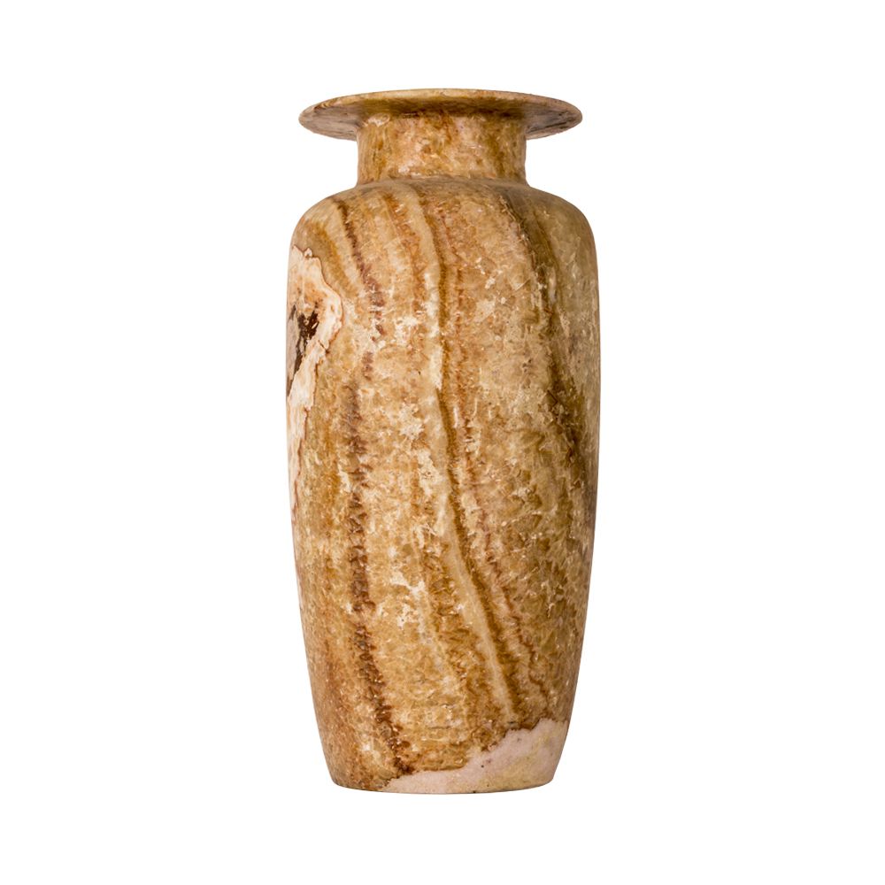 Brown Marble Vase hand-made by talented Egyptian Craftsmen from Alabaster stone that is featured by its high durability and high quality. The vase is made with full care and attention of our craftsmen in the Upper of Egypt. The Curves of the vase are very accurately made for a luxurious and beautiful final look. In the Ancient Egyptian Culture, Vases were used only in the kings’ and queens’ houses reflecting the luxury and richness of them. Own your vase now and add a unique touch to your home or your office décor. The vase is available in the size of 50 H, 17 W, 21 L cm (19.5” H, 6.5” W, 8” L inches).