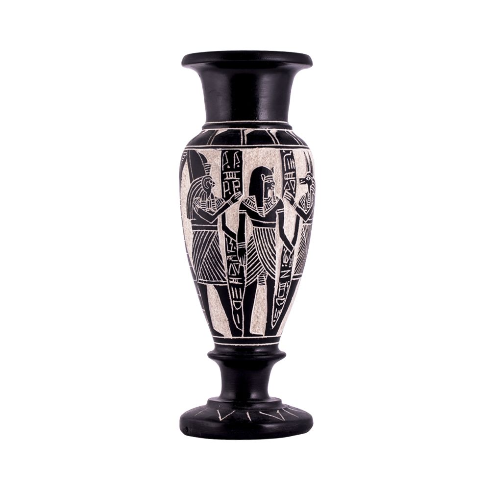 - Black Basalt Vase depicts falcon-headed god Horus and jackal-headed god Anubis blessing the pharaoh
