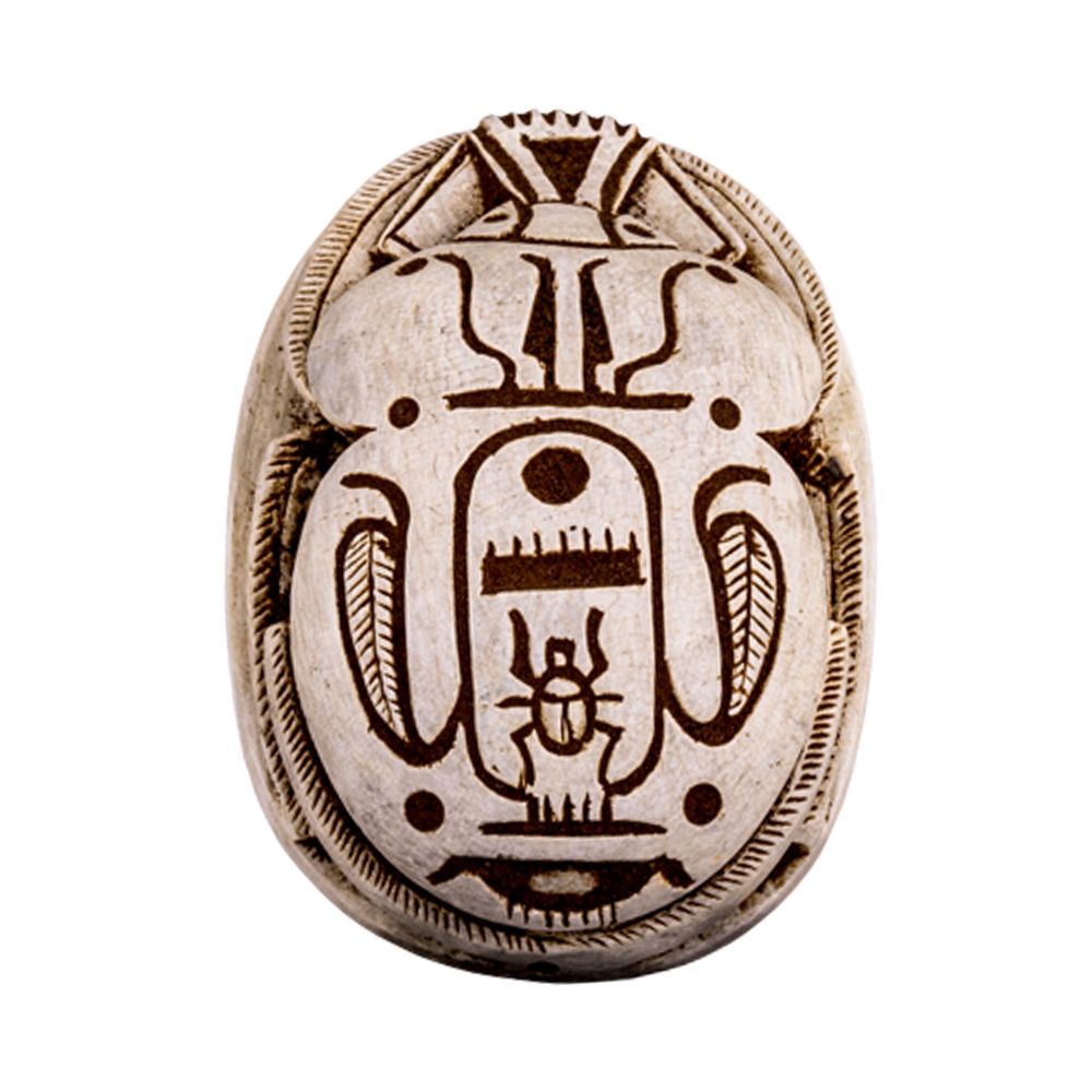 Real Egyptian Scarab For Sale antique is handmade by talented Egyptian small familia in Luxor. It is engraved from alabaster stones. The small families are marked by their creativity and accuracy curving accurate and clear details on the beetle body. The ornaments reflect the most famous Ancient Egyptian motifs to be a real replica to the ancient Egyptian scarab found in the Ancient Egyptian tombs buried with the famous Kings and Queens. White scarab symbolizes wealth and knowledge to be a central piece of your decor. The beetle sizes around 10 H, 8 W, 2 L cm (4” H, 3” W, 0.7” L inch).