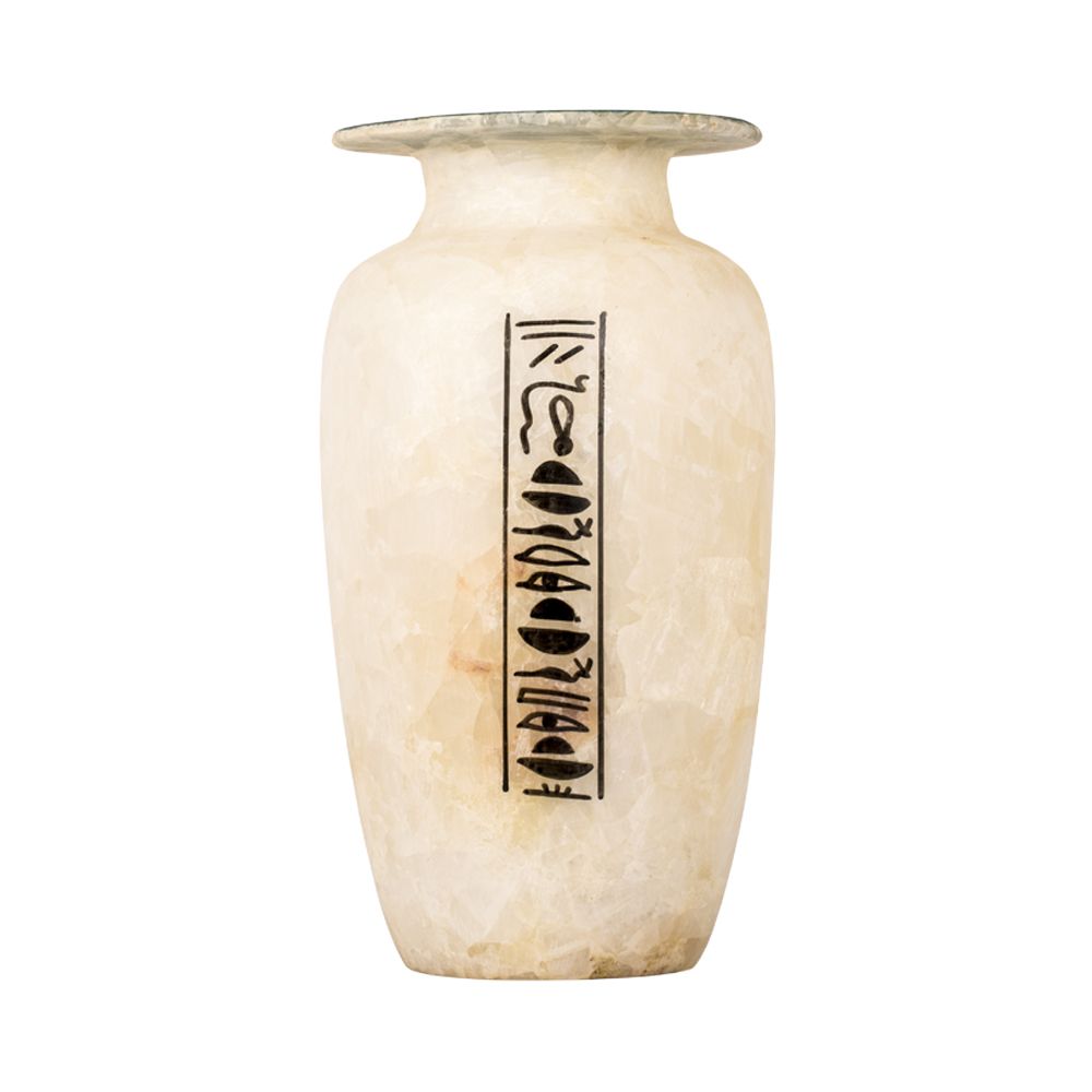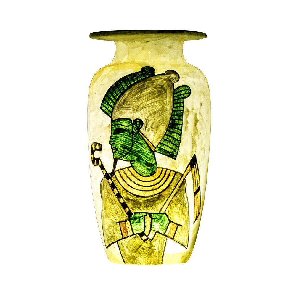White Marble vase is handmade of alabaster stone by talented Egyptian artisans in Upper Egypt. The vase is featuring of Osiris God with green paint. Osiris God is the God of all the Ancient Egyptian Gods, the divine God who judges the dead in the After Life. The Vase will absolutely add a perfect touch to your home or your office. It sizes around 39 H 28 W 20 L cm (15” H, 11” W, 7.5” L inches). An accurate creation by our talented craftsmen reflecting the full attention and care given while the hand-making. Shop now your own vase and enjoy door to door shipping with fast delivery.
