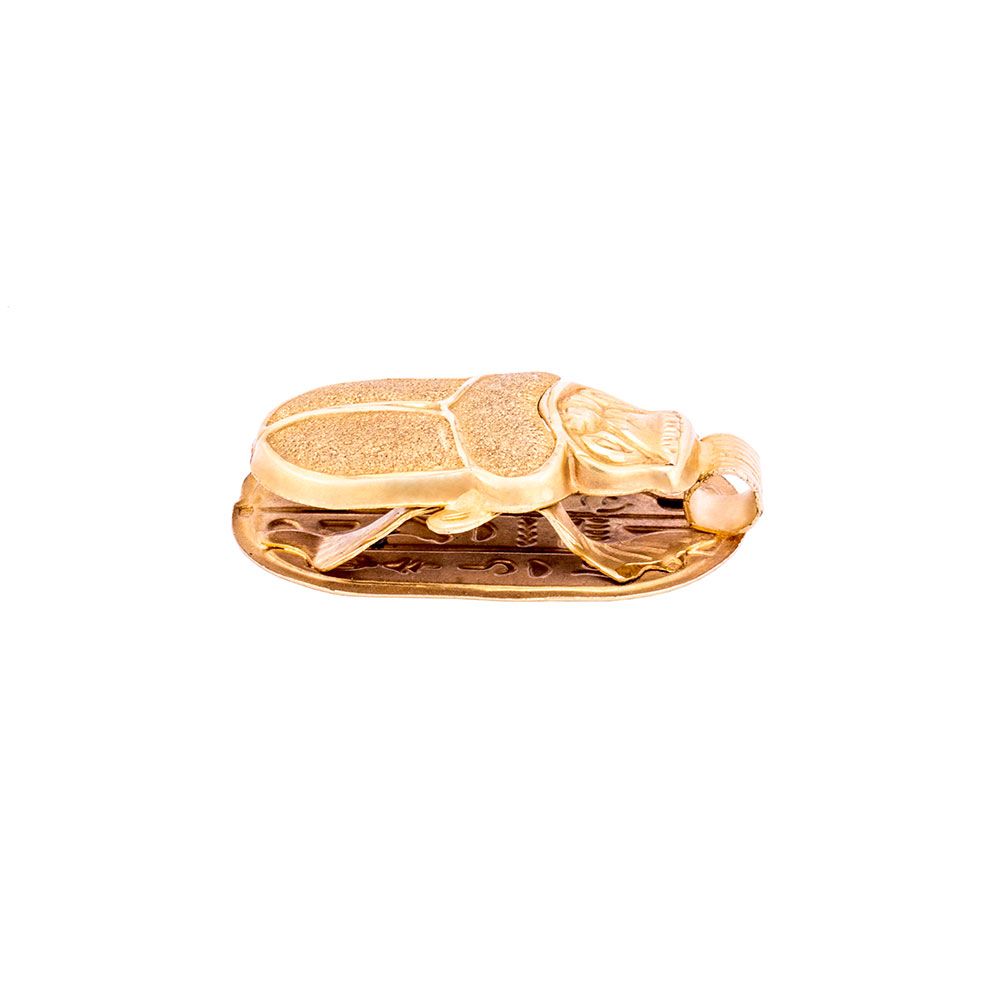 Ancient Egyptian Scarab Pendant is handmade with 18K Gold. It is from A to Z hand-crafted with passionate and creative craftsmen who do very detailed and accurate curves. The sophisticated design is to highlight the value of the Scarab motif which was popular amulets, representing Art. Scarabs for ancient historians were the source of information and knowledge. The Scarabs were firstly appeared in The Middle Kingdom (2055-1650 BC), they were used as seals. Scarabs had many purposes and significance through ancient Egyptian history, it was used as a symbol of wealth, and it was also used as a fashionable accessory having artistic expression. Super Luxurious and elegant piece of accessory adds instant beauty to your outfit.