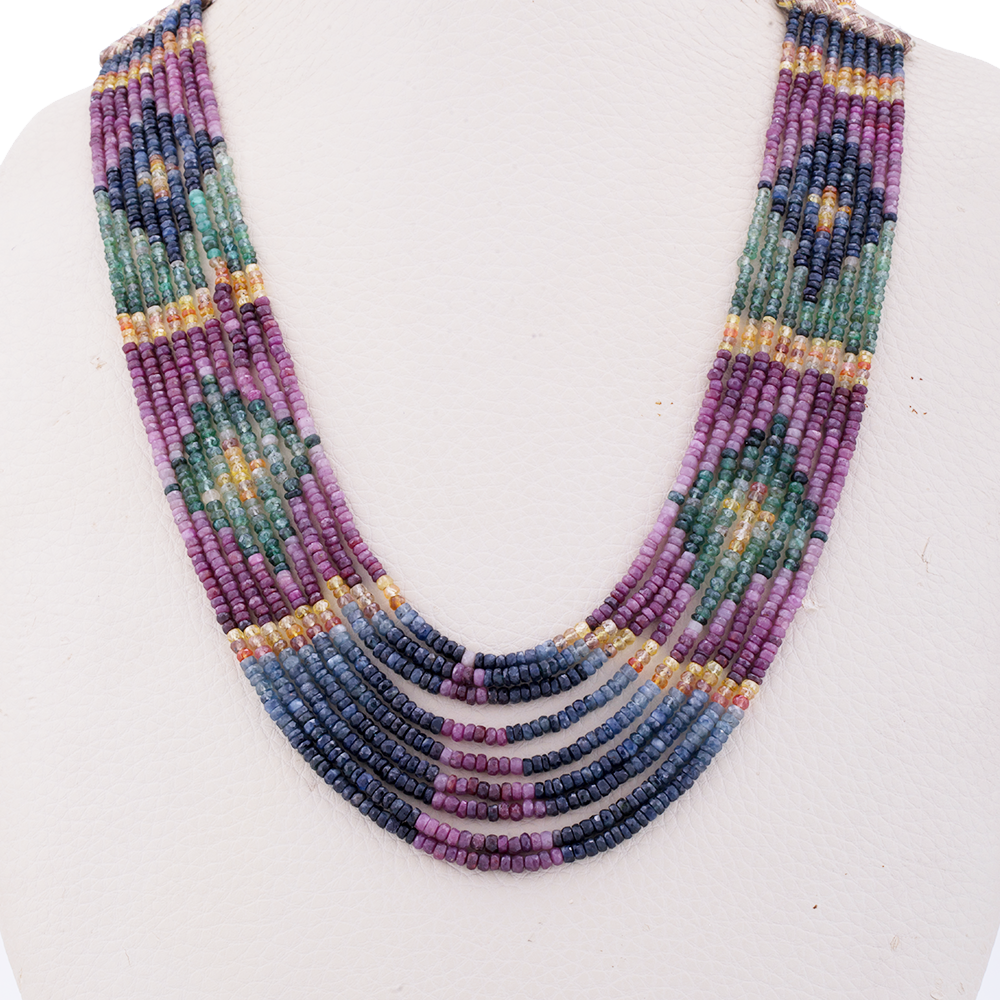 Charming Gemstone Necklace is made of 100% natural real material of precious stones. It is made of 7 different precious stones hand adorned by Egyptian talented hands. The 7 stones are Amethyst, Emerald, Lapis, blue topaz, ruby, and golden quartz. Precise Necklace is hand-made by talented Egyptian hands, following the same technique of ancient Egyptian craftsmen in creating jewelry by mere hands without any interventions of machines. A very sophisticated designed necklace adds an instant unique look to your outfit. It is designed as multiple layers with a gradient effect. It is to be worn on your simple one color dress to spot the light and attention on the necklace. The approximate length of the Necklace is 110 cm for a more apparent and catchy look.