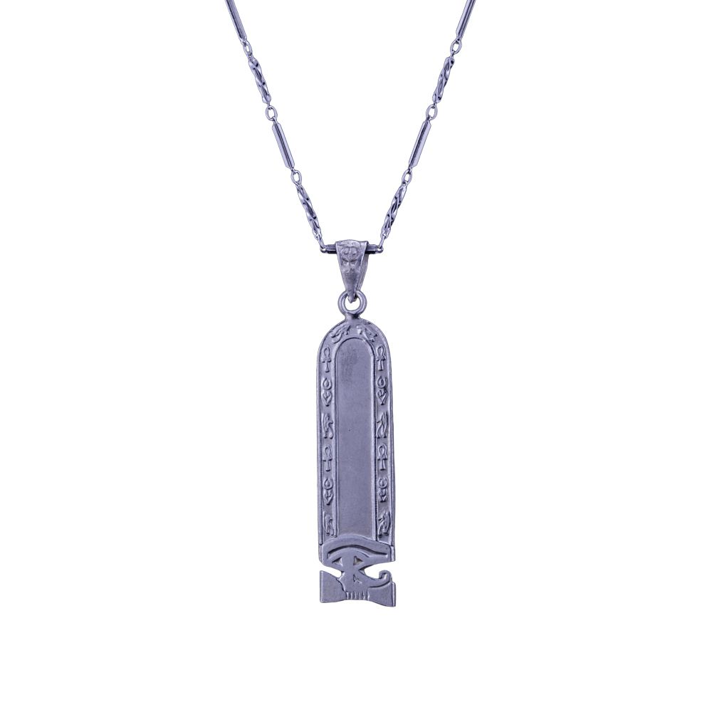 Royal cartouche Necklace is hand-made by our talent and professional craftsmen located in the heart of Cairo. We use the best qualities of shiny pure silver that is totally safe to your skin. The cartouche is graved accurately with smooth and equal edged surface. Accurate graved ornaments of Horus eyes for a more royal and elegant look. Cable chain necklace of beautiful and trendy design fits your outfit starting from your daily outfit to your beautiful evening dress. Personalize your own cartouche now by curving your name or initials with ancient Egyptian hieroglyphic letters. You can also customize the chain length according to your needs.