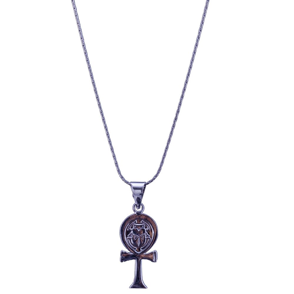 Obsidian pure silver Ankh chain ( The Egyptian Key of Life) is hand-crafted by our talented and professional designers. The design of the necklace is firstly drawn on a rough paper and then the silver is cut and trimmed carefully for a master quality piece of accessory. Ancient Egyptian scarab is graved on the necklace for more royal and classy taste. The necklace is made in the approximate size of 3x2 cm. As for the chain, the chain depends on your taste. You can choose between our different chains and choose the needed length of it as well.