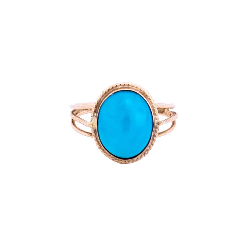Ova Vintage Turquoise Ring is hand-made by our talented craftsmen located at the heart of Cairo. It is made of 18K gold in around 3.08 GM. The ring is adorned with the Precious gemstone of Turquoise. The turquoise stone is giving the reflection of Nile River of Egypt with its blue pure water.