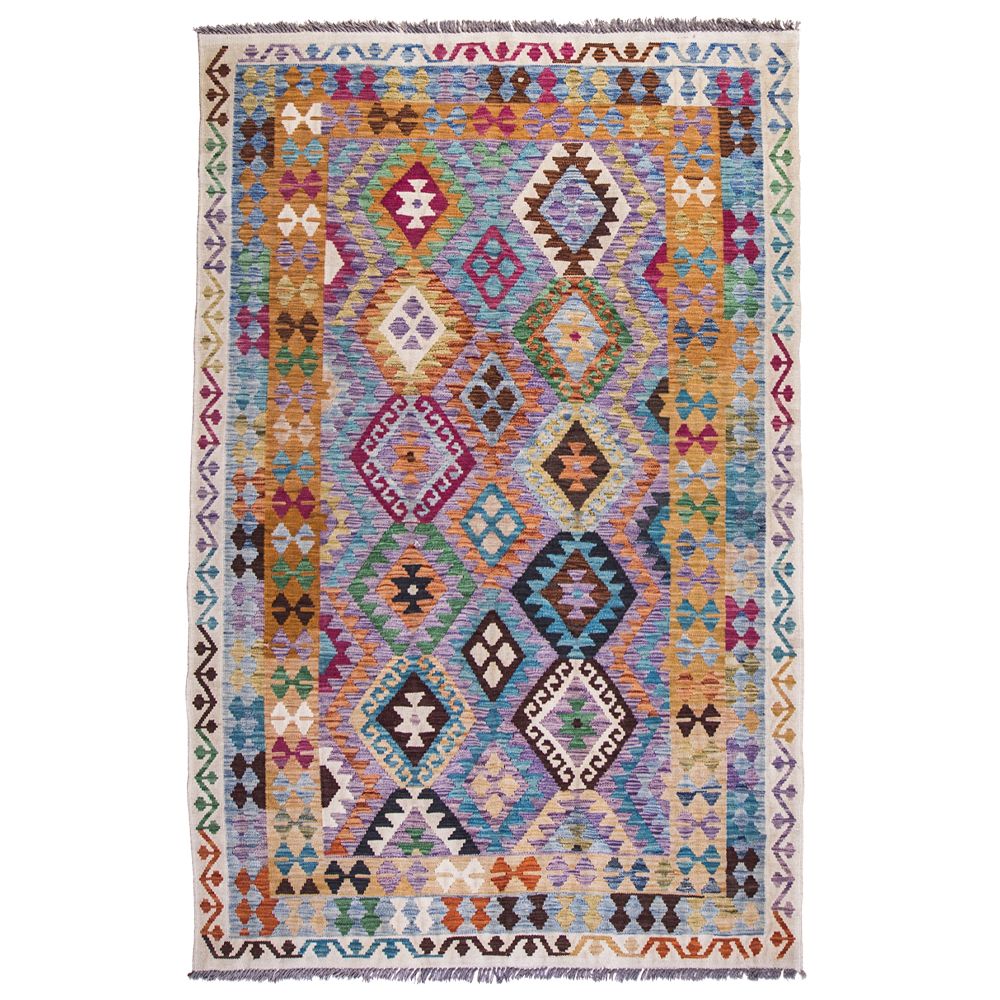 For adding a joyful atmosphere to your home, the rug is designed with a cheerful mixture of colors. It is made of red, blue, orange, white and their different shades. The rug cleverly measures around 4×6 feet. A rare size is to be found with Balouchi design. It is made with heavy long piles for a soft feeling on your foot. It also can be used as a wall-hanging portrait, depending on your taste.