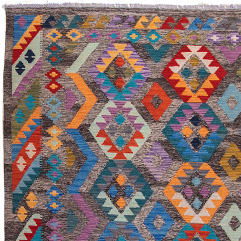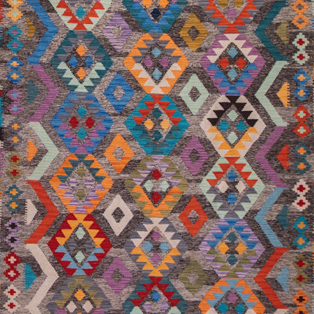 Shiny colorful threads are used. They are dyed with natural colors. The combination of colors is reflecting a cheerful and colorful final look. The usage of colors and mixing them together was on a major factor in the industry of Kilim in Egyptian civilization. They were using a blend of colors either bright or dark which they believe that they fit each other in order to create a piece of art and perfect creation.