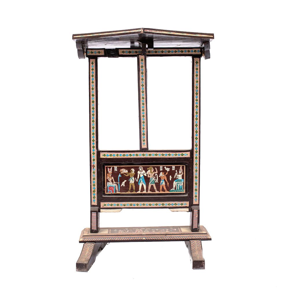 Ancient Egyptian table is handcrafted of the finest wood, Mahogany wood. Mahogany wood is used since ancient Egyptian times; however, the usage of wood was rare in Ancient Egypt. Mahogany wood is known for its beautiful designs, strength, and beautiful colors. Strong wood can bear any kind of pressure. The table has a flexible design that can be folded and locked upright so you can store it in any place.