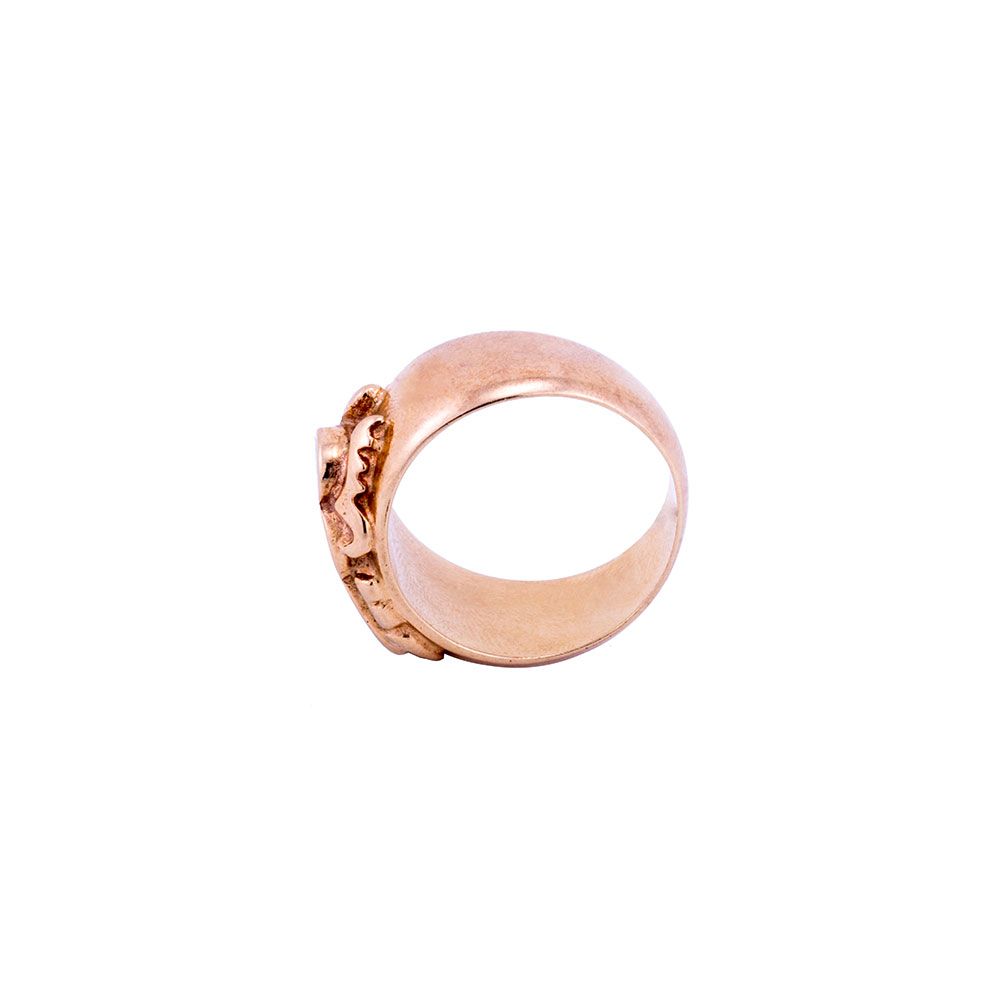 The beauty of the ring is emerged through the ancient Egyptian motif of scarab. The scarab in Ancient Egyptian myth was popular amulet which represented Art. Scarabs for ancient historians were the source of information and knowledge. The Scarabs were firstly appeared in The Middle Kingdom (2055-1650 BC), they were used as seals. Scarabs had many purposes and significance through ancient Egyptian history, it was used as a symbol of wealth, and it was also used as fashionable accessory having artistic expression.