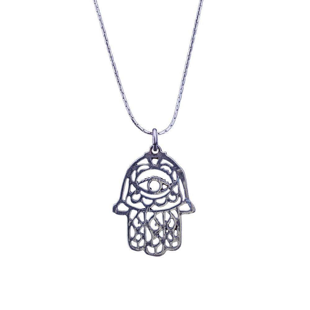 Hamsa Necklace, the amulet prevents its owner from any evil spirit. It also protects from negative spirits and brings you good luck, positive energy and safety. A very special and unique piece of jewelry is made with pure silver material. It is fully hand-made with passionate and talented craftsmen with accurate and sophisticated ornaments. The symbolic and meaningful pendant adds a royal touch to your everyday outfit or your simple evening dress. Shop now with only $45 Hamsa Necklace silver, customize the needed length of the chain by emailing us or leaving us a comment below.