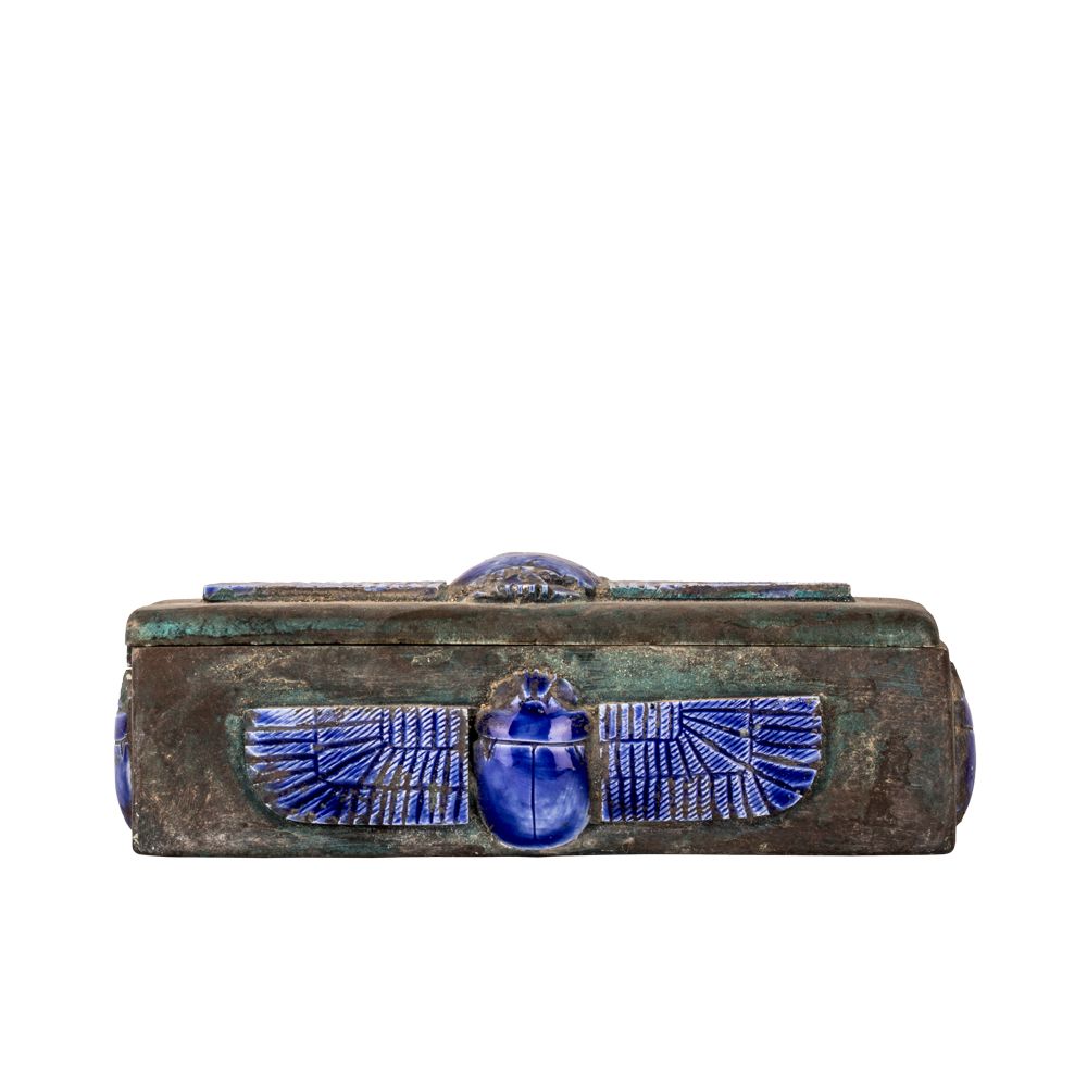 • The box itself features the winged scarab amulet, the ancient Egyptian amulet of wealth and fashion.