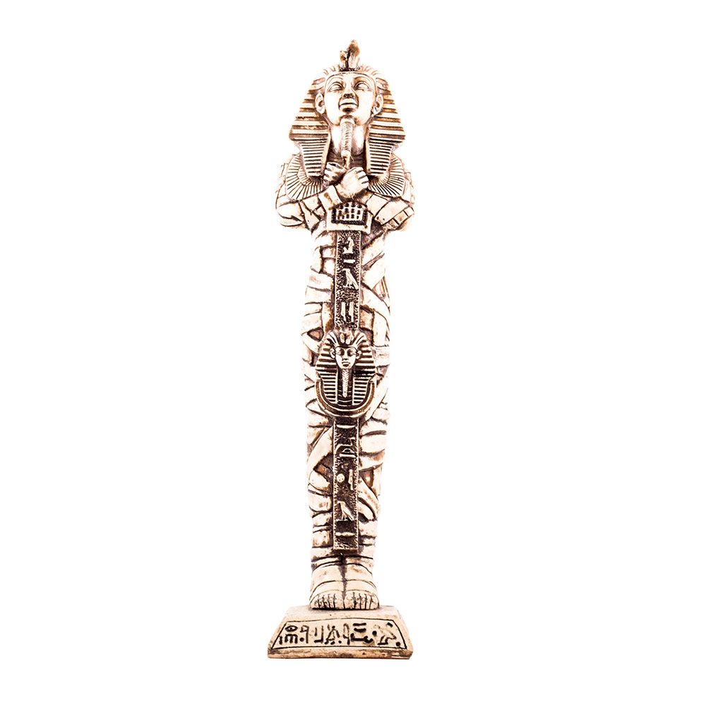 Vintage King Tut Mummy Statue, a piece of innovation and cleaver creation is hand-made by our talented and passionate artisans. It is carved accurately and beautifully from Alabaster material to show all the details of the King, the facial features, the hairdresser, the beard and the dress. The base of the statue is ornamented with ancient Egyptian motifs. King Tutankhamun is remarked in the history as the boy King who died at 19 years old and ruled for only 10 years since he was 9. King Tutankhamun left behind a complete tomb full of masterpieces that remarked through history as astonishing creation and innovation that is so hard to the human mind to explain. Unique, masterpiece of Decoration adds historical beauty to your house or hotel hall.