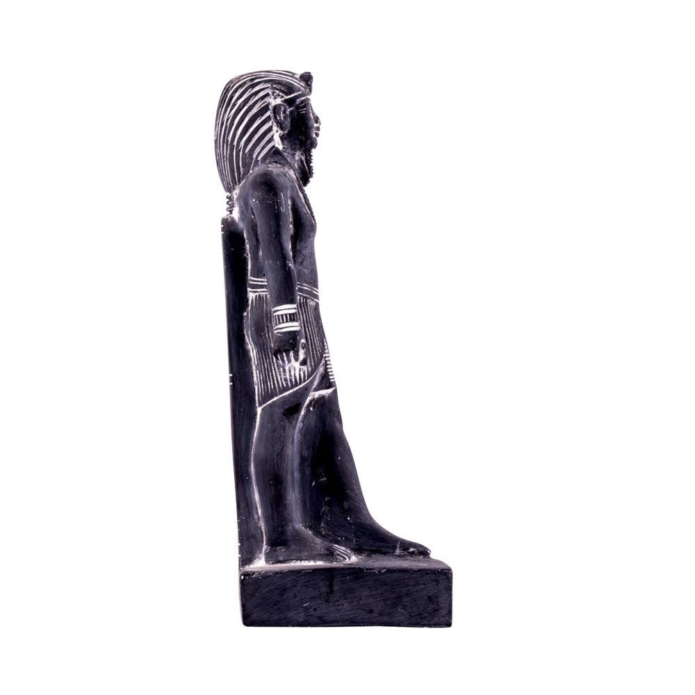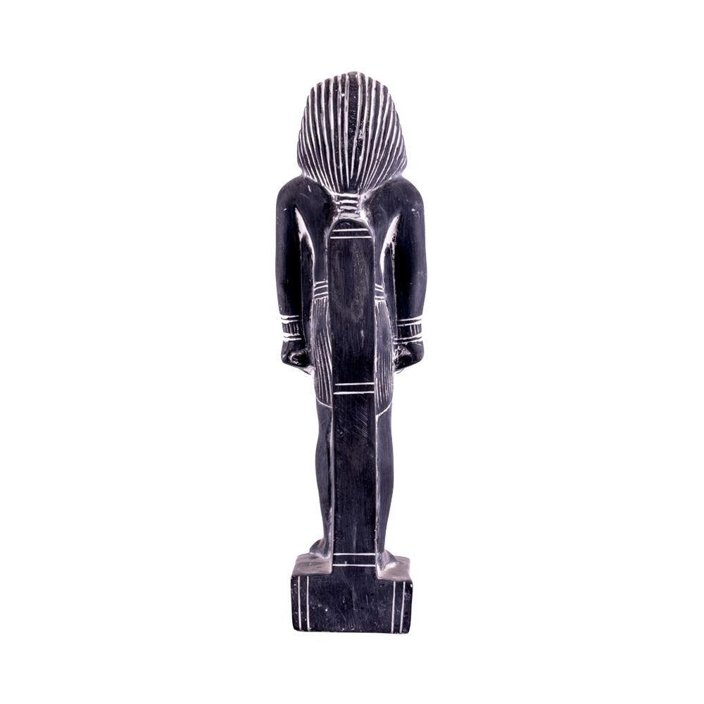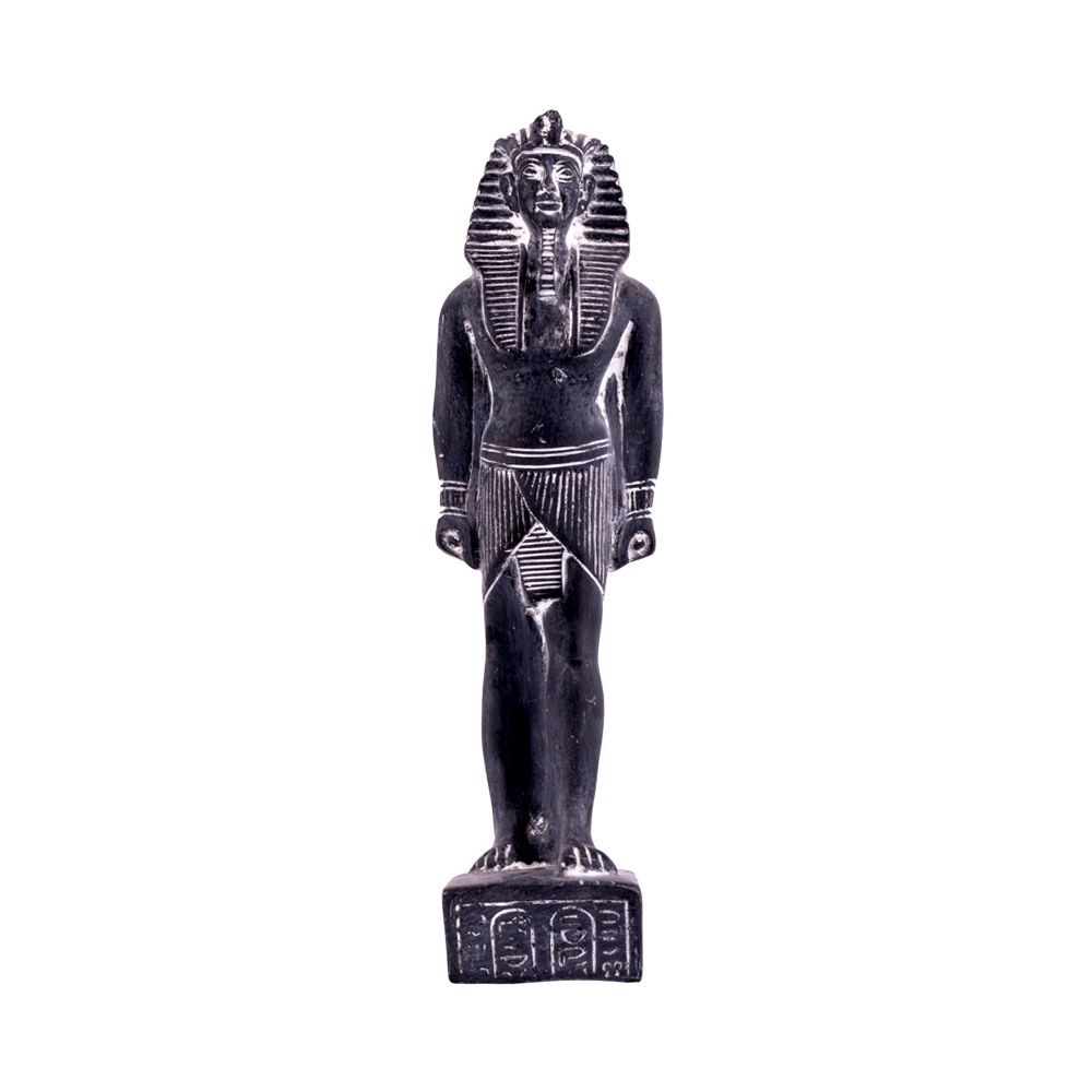 King Tut Statue is holding scripter and flail. King Tutankhamun is the iconic figure of ancient Egyptian history who left a complete tomb behind full of masterpieces. He died at the age of 19 years old and ruled Egypt for around 10 years between 1332 to 1323 B.C.E. Handmade statue is fully made by talented and professional Egyptian small families in Luxor. It is Curved from basalt stones with accurate details and ornaments of the King. A special and unique piece of decor adds an instance of beauty and value to your room decor. It sizes around 26 H, 7 W, 9 L (10” H, 2.5” W, 3.5” L inches).