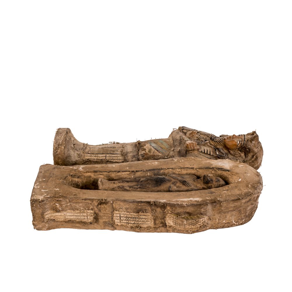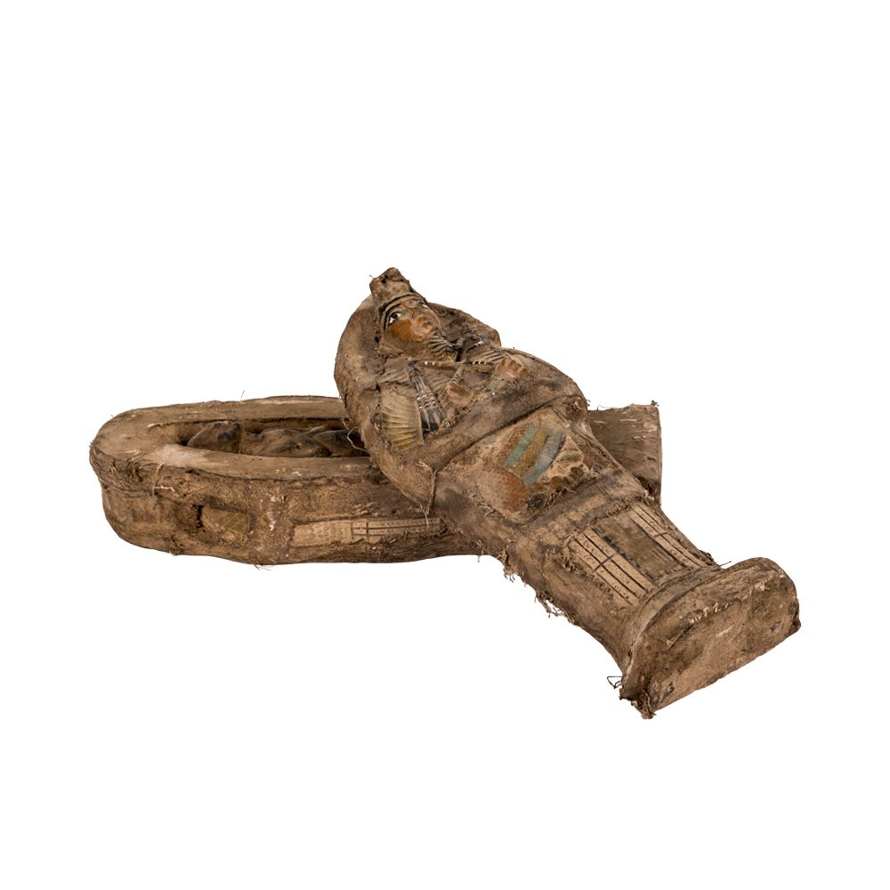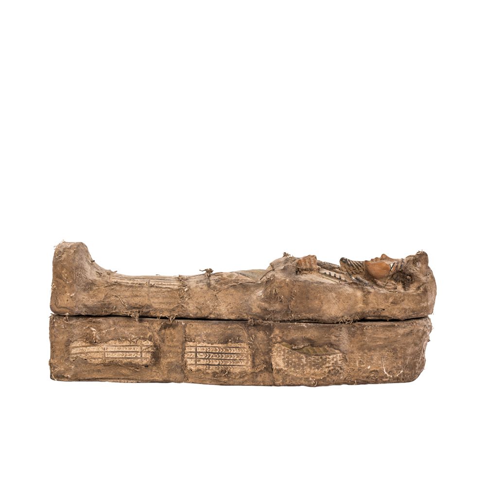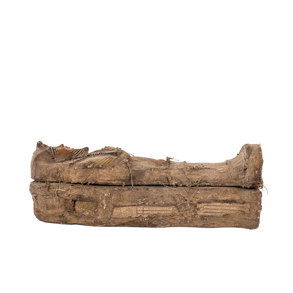 This small replica is one of the kings' coffins, as Tutankhamun was buried in as many as eight coffins, each functioning as repeated images of the deceased and as protective capsules against robbery.