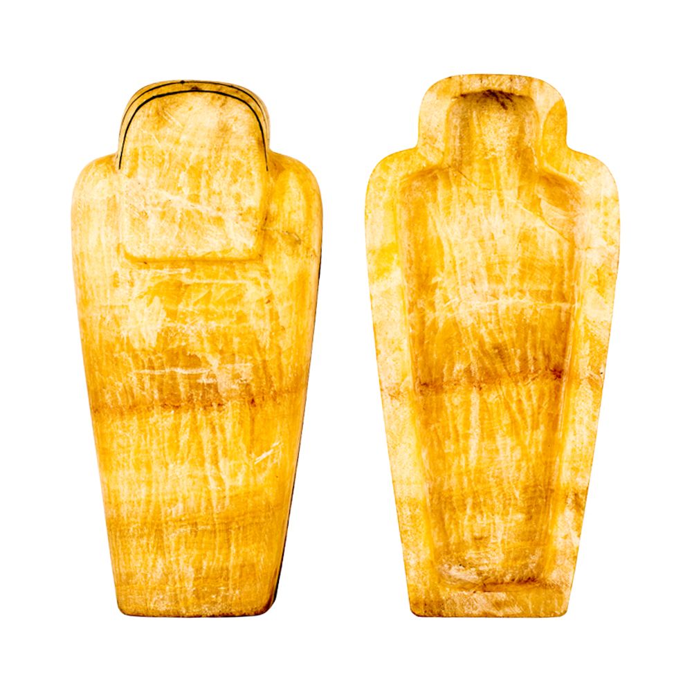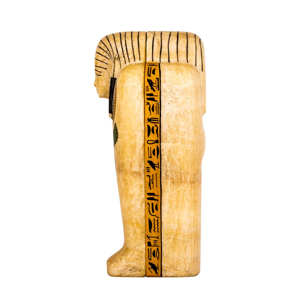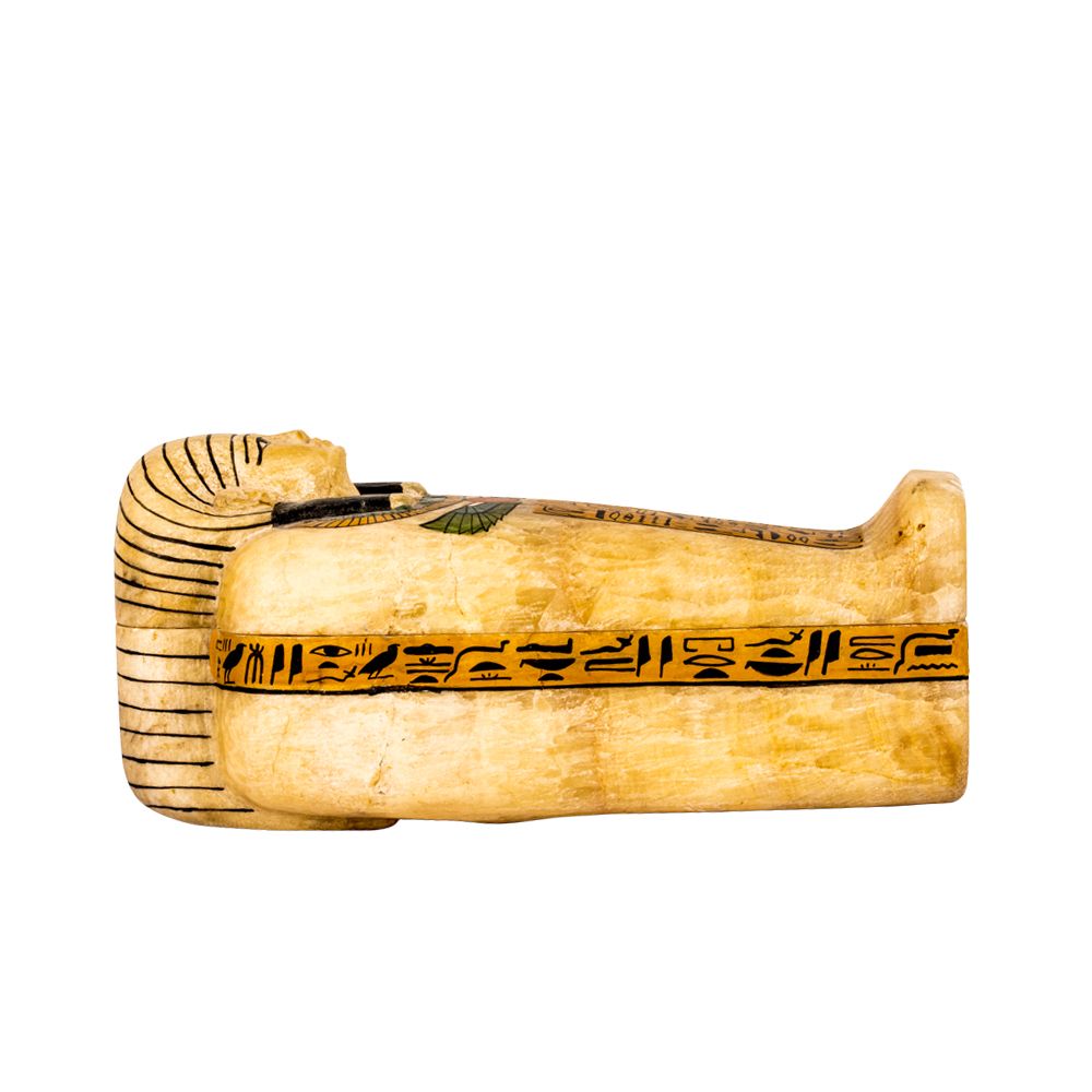 "Such an interesting piece of decoration, this miniature alabaster mummy sarcophagus comes with an alabaster-made mummy inside. Sarcophagi have always been objects of interest and the earliest stone-made we have documented date from the 3rd Dynasty in Egypt, between 2686 to 2613 BC.