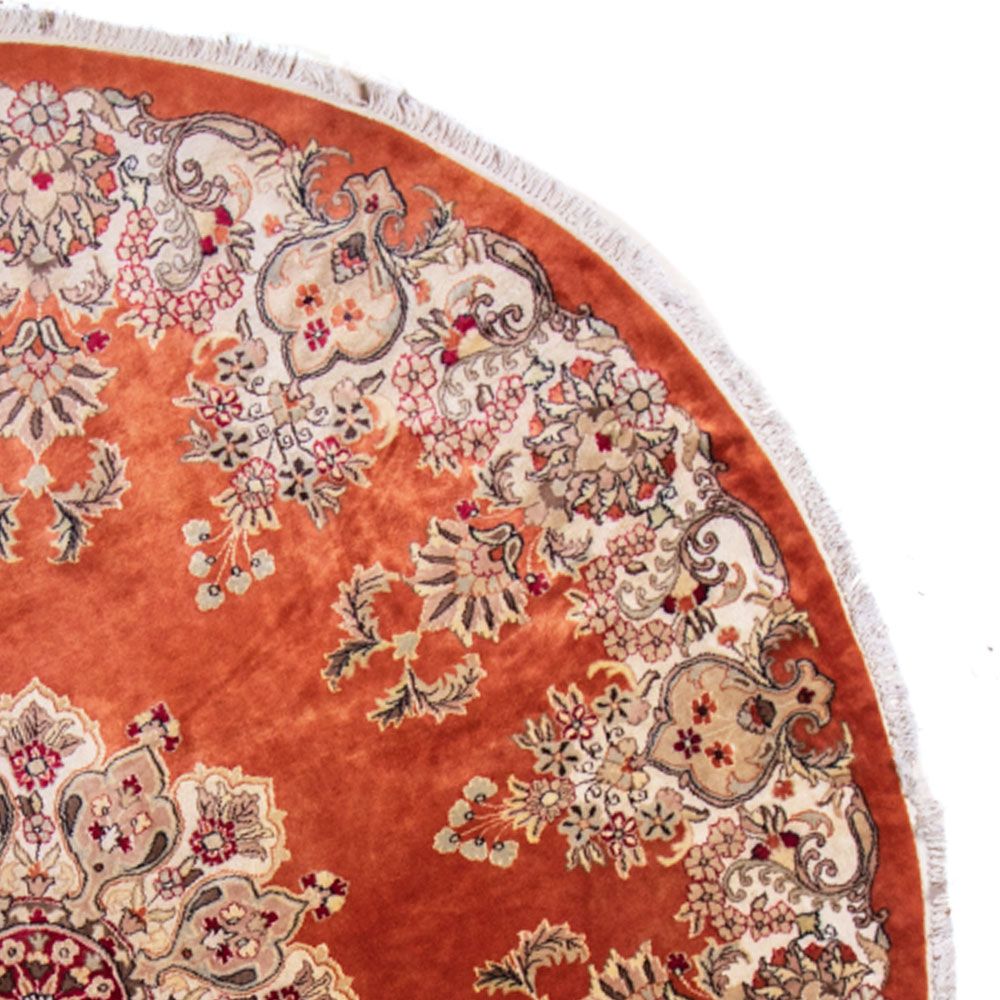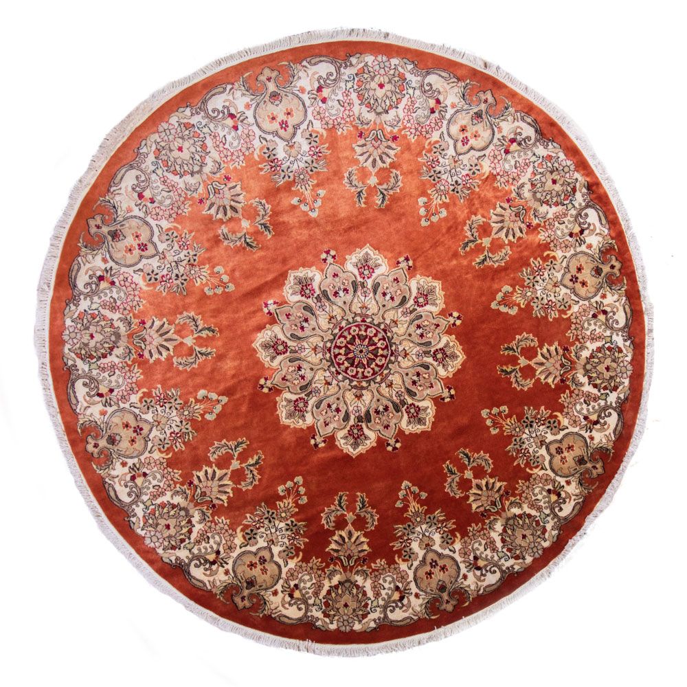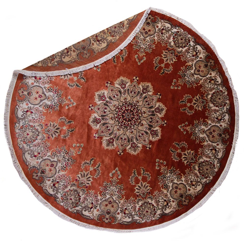 Luxurious royal round rug for sale is hand-woven with 100% natural materials of cotton and wool mixture. The rug is fully hand-woven without whatsoever interventions of machines. Our professional and talented weavers do very accurate and sophisticated work in order to produce perfect quality rug. The rug is knotted by two weavers at the same time within duration of 9 months.