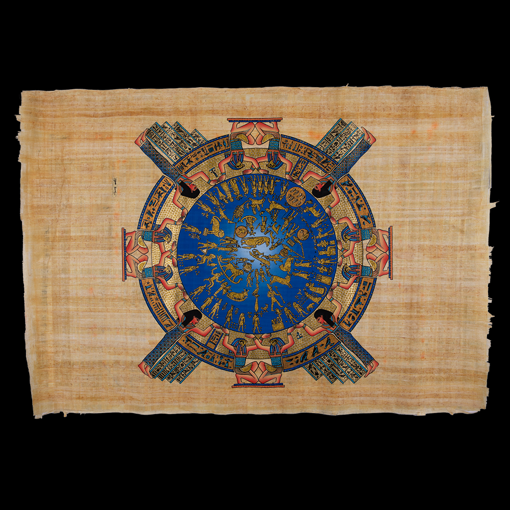 Zodiac the first calendar in the history,The Astrological Calendar, Dark colored, Handcrafted Egyptian Papyrus, Royal, Perfectly sized in 100x70 cm.